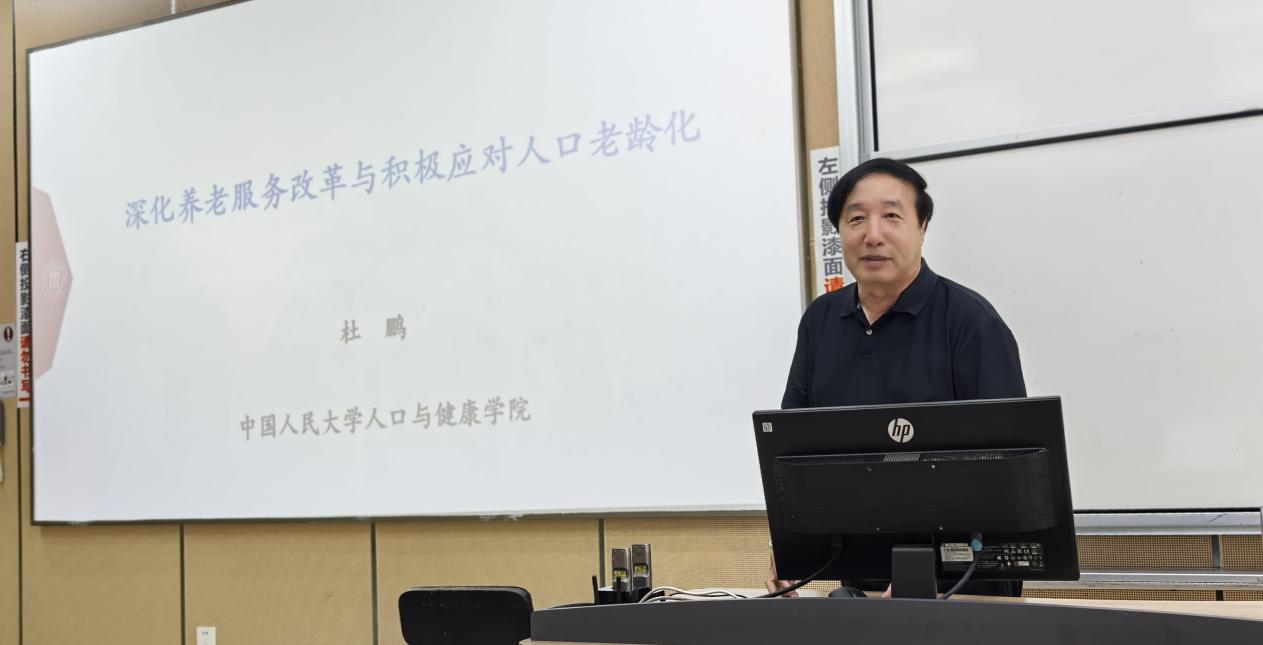 杜鹏教授以“深化养老服务改革与积极应对人口老龄化”为题,深入解读了《关于深化养老服务改革发展的意见》作为推动高质量发展行动指南的重大意义,深刻剖析了中国人口变迁与积极应对人口老龄化国家战略部署的关联,提出发展“银发经济”、探索“中国式养老”方案、关注农村老龄化与数字技术赋能等关键路径。他强调,未来十年需强化医养结合,应对老年人口增长挑战。