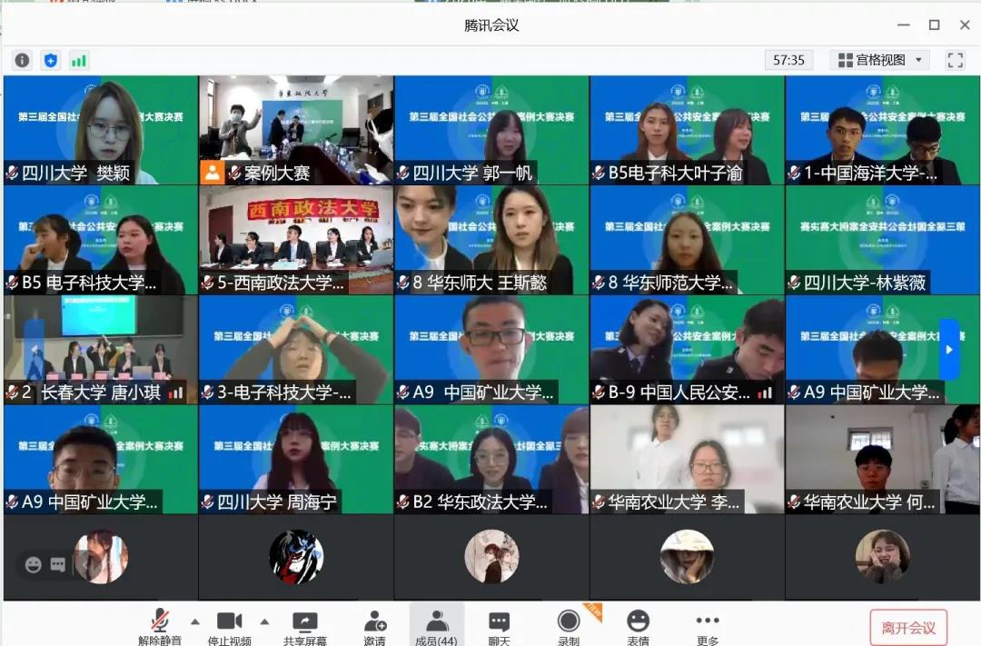 2020年11月7日上午,“第三届全国社会公共安全案例大赛”决赛通过云端平台正式举办。本届大赛自5月份启动以来,吸引了来自上海交通大学、四川大学、华东师范大学、电子科技大学、中国政法大学等国内著名高校的大学生队伍参与报名并提交案例分析报告。经过了初赛的严格筛选,最终20支队伍突破重围,进行这场激烈的“云端竞技”。