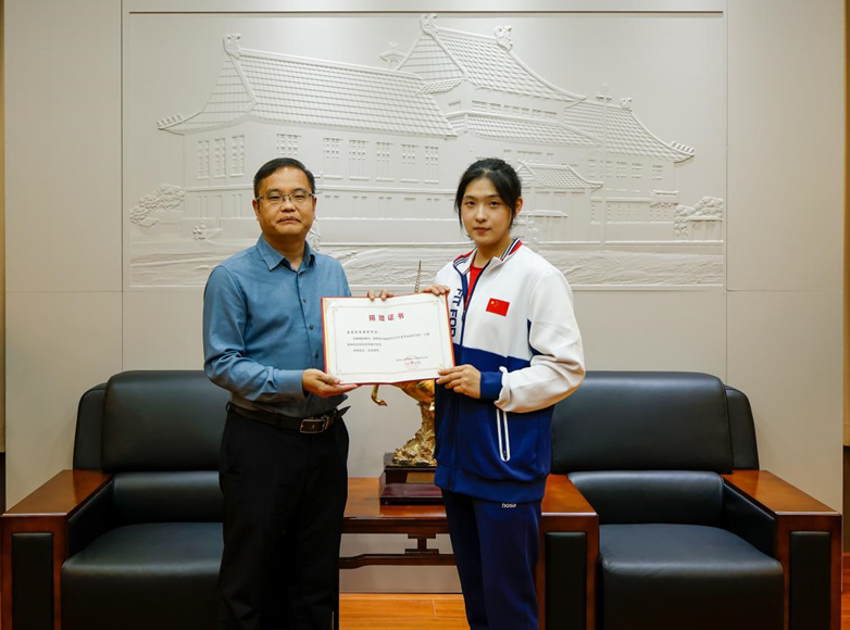 王颜青同学表示,能够以火炬手的身份参与成都第31届大运会是她的荣幸,这次把大运会开幕式火炬捐赠给学校,一方面想表达自己对学校培养的感激,另一方面也希望能激励更多川大人点燃青春梦想,彰显青春担当。