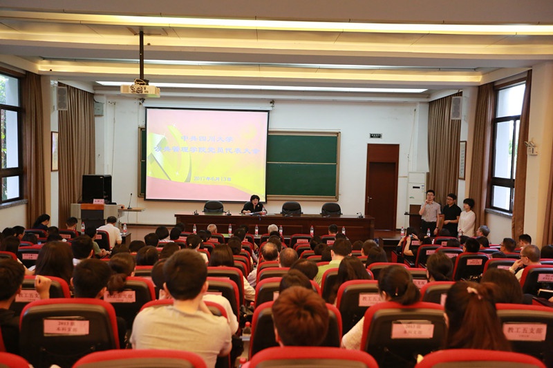 6月13日下午14:30,betway西汉姆联官网在望江校区全国干部教育培训基地一号演播厅召开党员代表大会,选举产生学院出席四川大学第八次党代会代表候选人。会议由学院党委书记姜晓萍同志主持,学院两委委员、离退休党员代表、在职教职工党员代表和学生党员代表及相关工作人员120余人参加了会议。