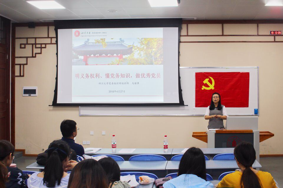 4月27日晚7:00,betway西汉姆联官网第一期学生党员能力提升班第四次行课暨结业典礼在望江东二教106教室举行。学院党委副书记兼纪委书记杨磊老师、校党委组织部马丽萍老师、桑启源老师、学院党政办邓雅芯老师、各年级辅导员及全体学员参加了结业典礼。讲座及典礼由2017级本科辅导员周锐老师主持。