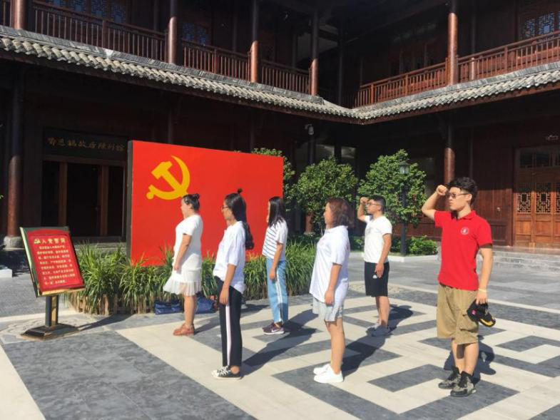 同日,实践团队继续参观了位于荔波县的邓恩铭故居,并在故居前庄严宣读入党誓词。团队师生牢记早期共产党人在艰苦条件下心系人民和国家的执着,立志为实现中华民族的伟大复兴传承这一宝贵的精神财富。