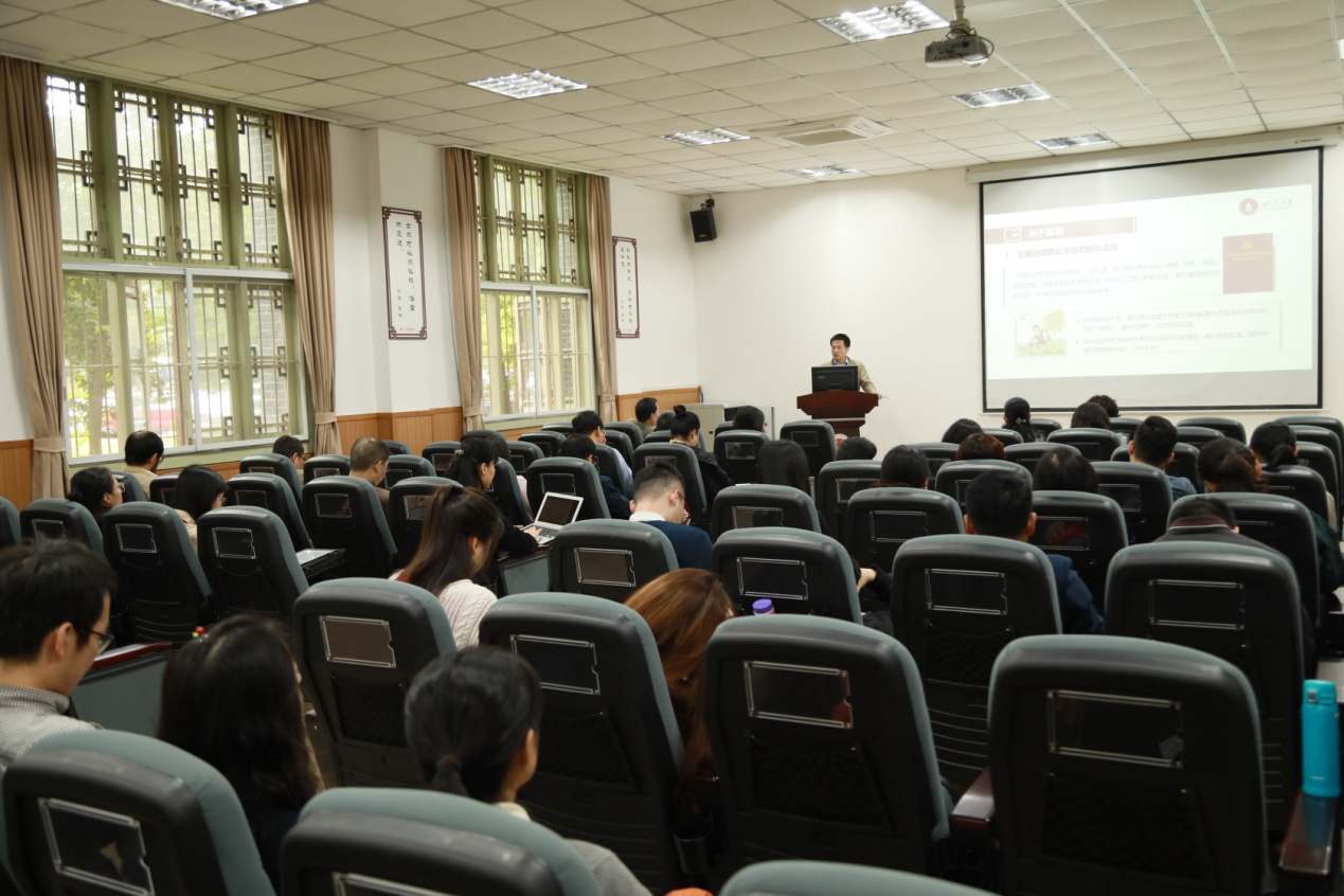 讲座后,杨磊副书记带领全院教职工学习了《中共四川省委教育工作委员会 四川省教育厅关于认真组织学习彭清华书记< 新时代四川的使命和任务——在蓉高校师生代表形势政策报告>的通知》和《在教育系统知识分子中深入开展“弘扬爱国奋斗精神、建功立业新时代”活动的实施方案》文件精神。史云贵院长,夏志强副院长、李睿副院长分别就近期分管工作进行了通报。