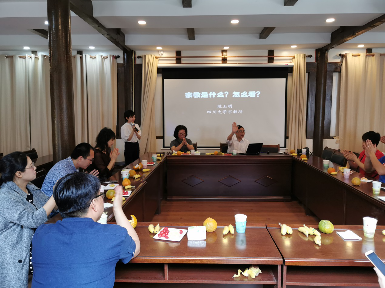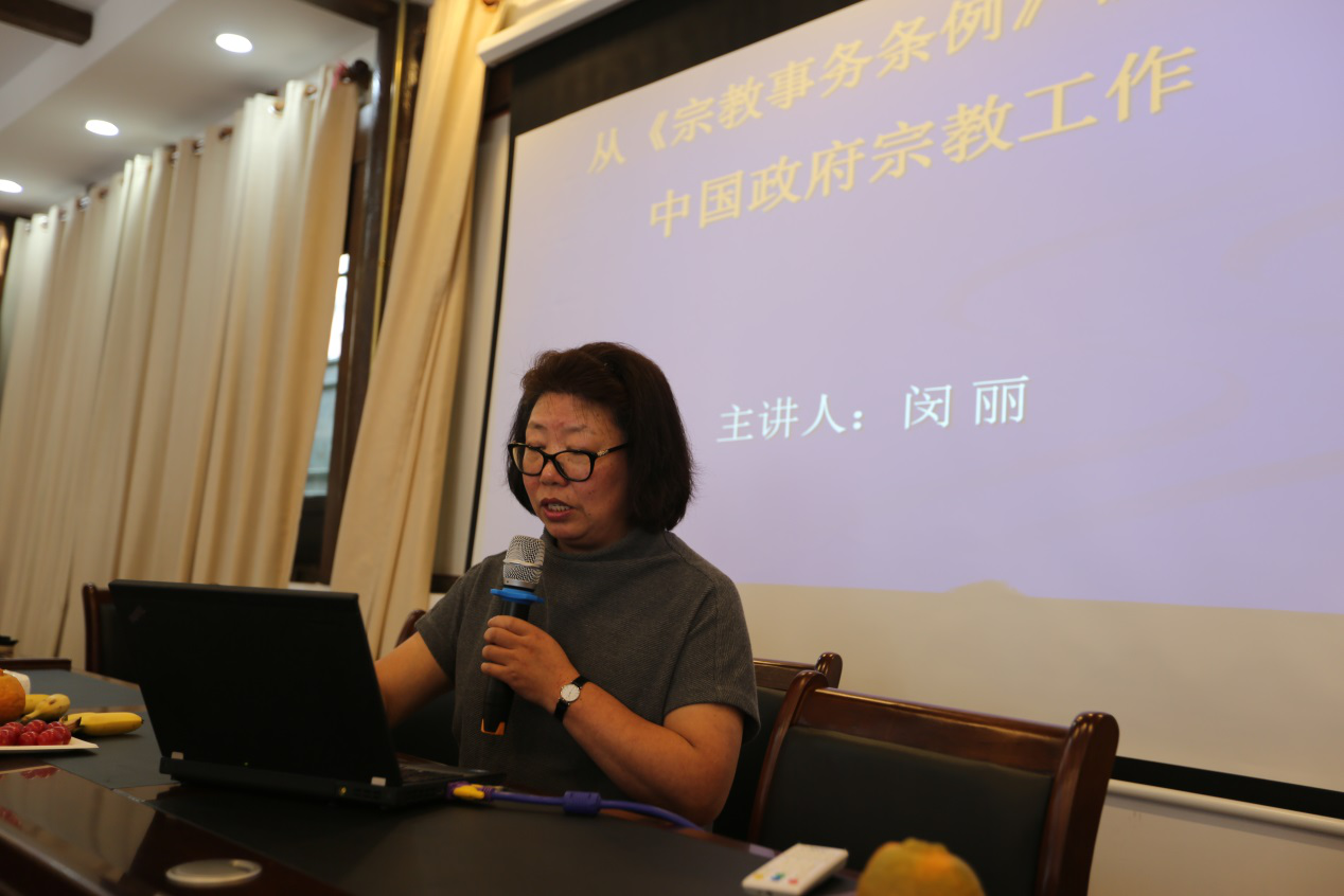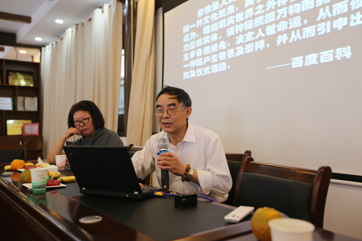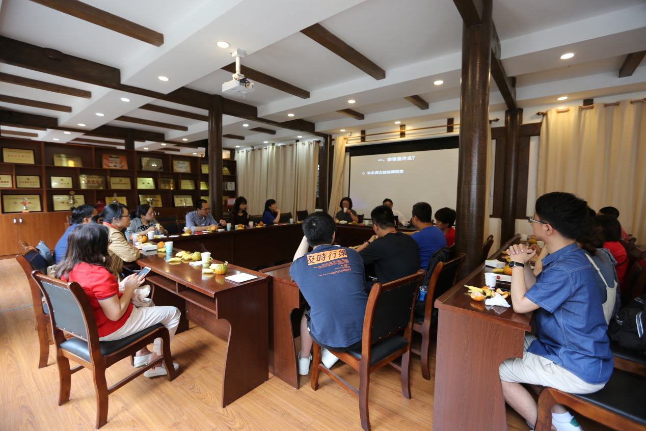 参观完毕后,教工第四党支部段玉明教授和闵丽教授为参会师生作了宗教政策专题讲座。段教授以华东师范大学开展的信仰调查为引,对宗教的概念和本质问题进行了简单的概述。段教授谈到,从社会功能层面来看,宗教可以通过更为直接和具体的形式,促进社会道德的发展和伦理规范的建立,对调解社会矛盾和人际关系有着积极作用。但另一方面,宗教也有其作为宗教所固有的“非理性”特点,因而在如何看待宗教这一问题上,需要通过增强理性,去除宗教的非理性,通过完善相关法律法规,规范宗教的社会性行为。