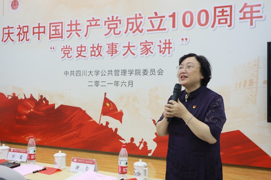 6月23日下午,betway西汉姆联官网庆祝中国共产党成立一百周年系列活动之“党史故事大家讲”活动在四川大学全国干部教育培训基地1号演播厅顺利开展。学院党委书记姜晓萍教授、院长史云贵教授、教授委员会主席乔健教授、党委副书记兼纪委书记杨磊副研究员、干训基地副主任王慧敏副研究员、行政管理系系主任范逢春教授、专职组织员廖海燕老师,学院各党支部书记、全体科级干部、工会小组组长以及师生党员代表100余人参加本次活动。