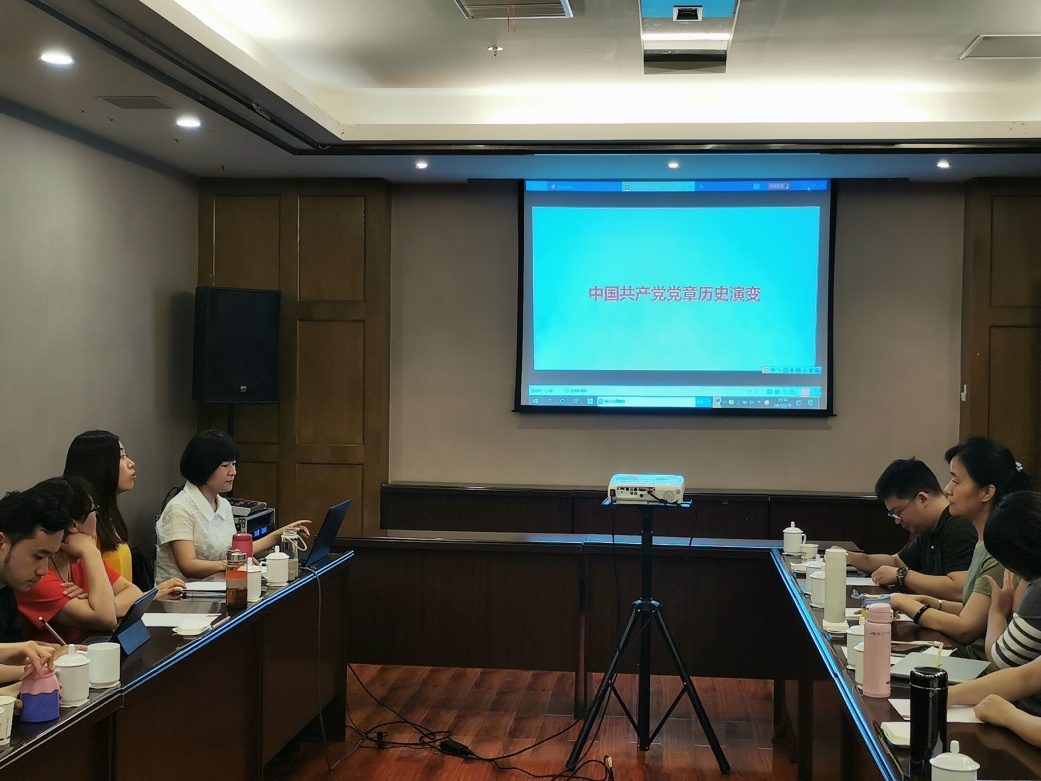 在庆祝中国共产党成立100周年之际,2021年6月19日下午,公管教职工第五党支部组织了一次党支部活动。首先,由支部党员、学院副院长罗亚玲同志给全体党员老师上了一堂主题为《中国共产党党章历史演变》的党课,介绍了我党党章形成及每一次修改的历程,并对演变的内容和特点进行了详细的分析,以及党章发展演进如何适应当时社会发展,实现与时俱进等。从党章历史演变中体现我党集体智慧和自我完善的能力。通过讲座的学习,在座的每一个老师对党史有了更深入的了解。