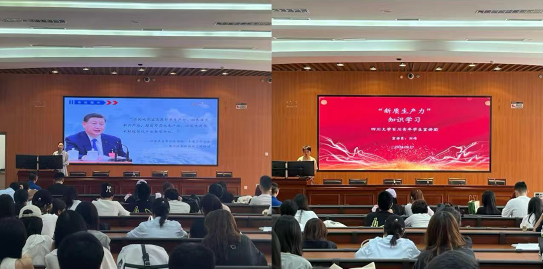 四川大学百川青年学生宣讲团、四川大学马克思主义学院博士生宣讲团宣讲员、马克思主义学院硕士研究生第二党支部金菲菲同志和四川大学百川青年学生宣讲团betway西汉姆联官网分团成员刘伟同志分别围绕“低空经济”和“新质生产力”进行主题宣讲。
