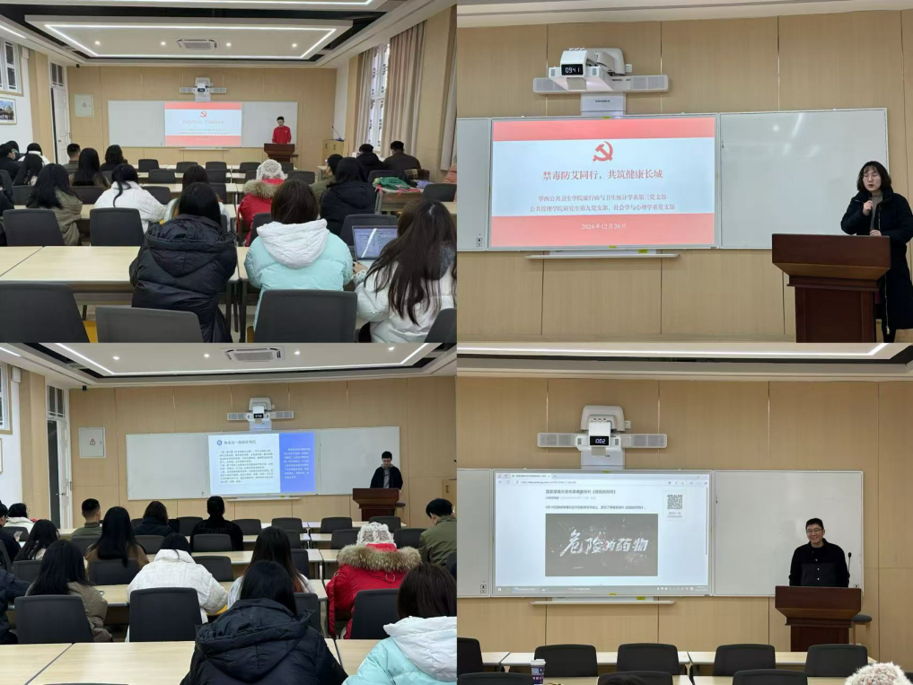 12月26日上午,betway西汉姆联官网社会学与心理学系党支部、研究生第九党支部与华西公共卫生学院流行病与卫生统计学系第三党支部在betway西汉姆联官网206室联合开展“禁毒防艾同行,共筑健康长城”主题党日。本次活动由华西公共卫生学院流行病与卫生统计学系第三党支部党员吴祥瑞同志主讲,学院党委委员、社会学与心理学系党支部书记李诗颖副教授,徐文健副教授等三十余位同志参与了本次活动,秘书档案学系党支部书记、系副主任赵跃副研究员受邀出席。活动由学院研究生第九党支部书记孟焕主持。