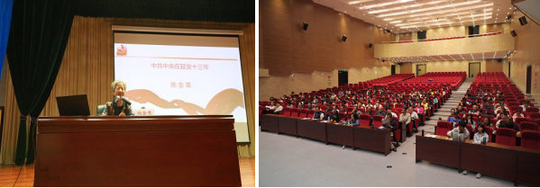 培训班邀请延安干部培训学院姚金果教授作《中共中央在延安十三年》专题讲座,姚教授从“落脚陕北”、“延安岁月”、“转战陕北”三个方面全面回顾了中国共产党落脚延安、转战陕北的历史原因和奋战十三个春秋的艰苦历程,并得出“得民心者得天下”的历史启示,对延安精神的主要内容进行了深刻的解读。