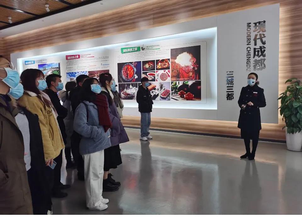 (图为讲解员为同学们讲解成都市的城市定位)