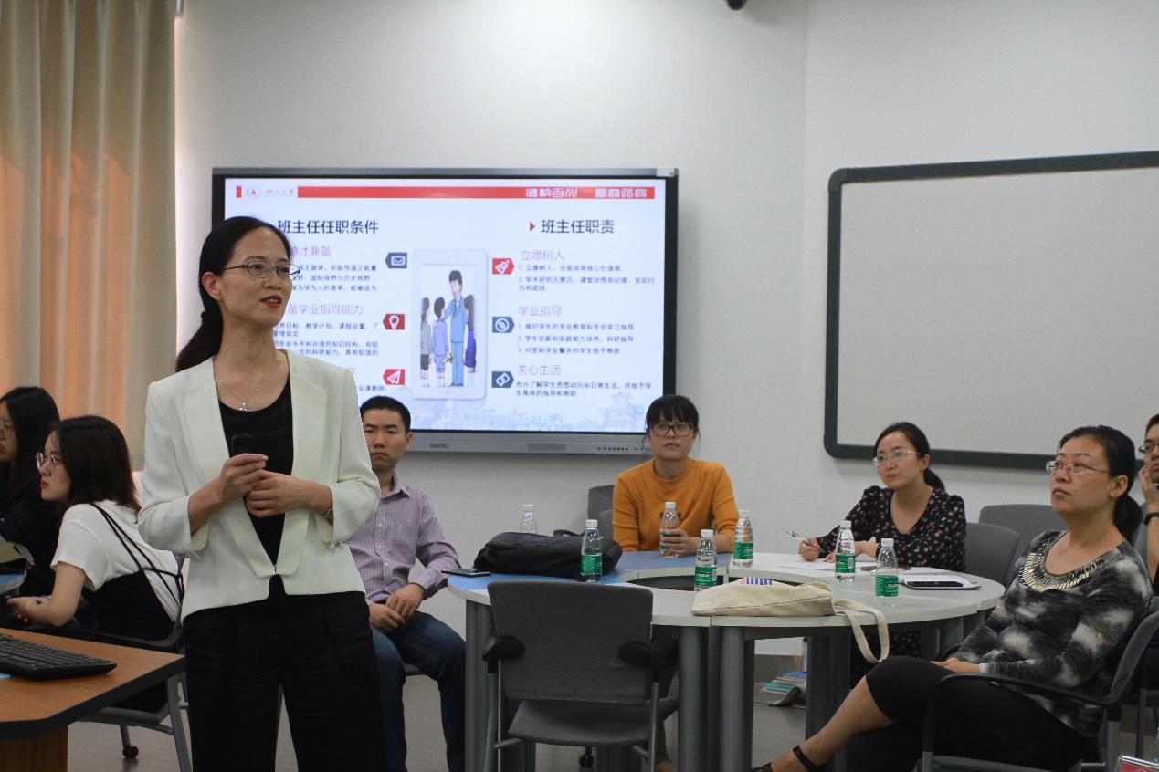 9月27日下午,由四川大学教务处、教师教学发展中心、法学院、建筑与环境学院、betway西汉姆联官网联合举办的四川大学班主任胜任力培训暨班主任经验交流会,在四川大学望江校区基础教学楼A304成功举行。本次会议共计40余位教师参加,我院周文泓老师作为班主任代表进行了工作经验分享。