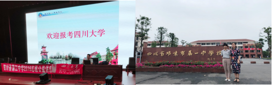 为响应新时代本科教育再升级的号召,积极助力我校一流学科建设和一流人才培养,按照学校统一部署,2019623日,由我院青杨媚老师、周锐老师、陈萱源老师、方亚琴老师组成的本科招生宣传工作组分别深入邛崃市、蒲江县重点中学举办四川大学本科招生宣讲会并现场接受考生及家长的相关咨询。