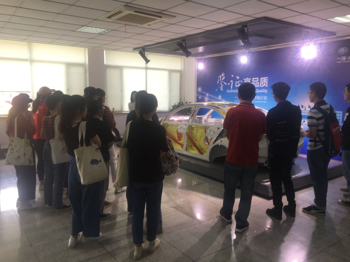 秉承“德国品质”严谨的质量管理传统,成都分公司以德国大众标准一致的品控管理为标杆,在轿车生产的四大工艺上体现了创新、绿色、高效、安全等生产理念。同学们近距离感受了捷达汽车的生产工艺及其安全性的关系。