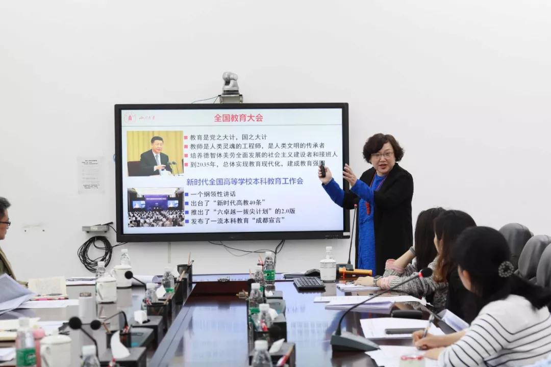 姜晓萍书记首先宣讲4月18日学校“新时代本科教育改革与发展大讨论”的主要精神和工作部署,传达了王建国书记、李言荣校长、张林副校长对川大本科教育升级再出发工作的重视与讲话要点,再结合校领导提出的面向未来聚焦本科教育改革发展六大关键环节阐释我院推进本科教育改革发展的引领要旨与战略思路,表示学院一定会全方位、全力保障本科教育的改革与发展。