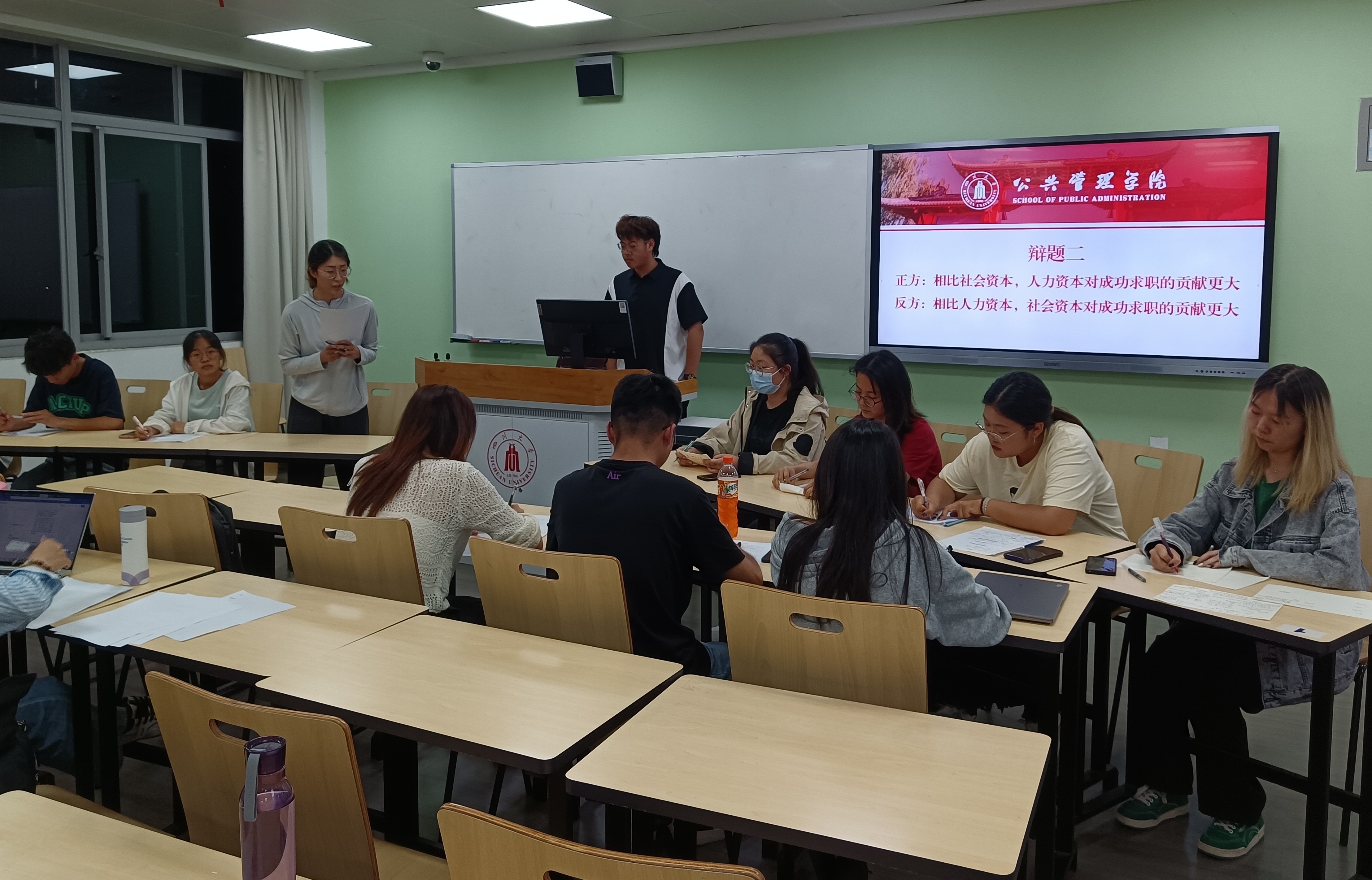 5月24日晚,在任课教师杨帆的精心组织下,《劳动经济学》课程辩论赛在江安校区第一教学楼C106教室成功举行。本次辩论赛共设三个辩题,每个辩题均关涉社会热点或劳动经济学的重要议题,分别是人工智能是否会导致大量失业、人力资本与社会资本对成功求职的贡献,以及劳动是否存在高低贵贱之分。三位来自betway西汉姆联官网的硕士研究生简丽敏、杨丹、刘伟同学担任评委。