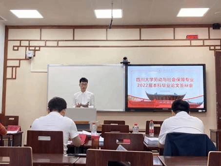 2022年5月20日下午,2022届劳动与社会保障专业本科生学位论文答辩会在四川大学望江校区第二教学楼成功举行。劳动与社会保障专业吴耀宏、罗哲、吴敏、沙治慧、李丹、张浩淼、杨红、杨斌、黄静、林熙、贺璇、黄国武、张伟科、彭峰、曾路遥、田益豪、杨帆、曹杨等18位老师出席并担任答辩评委。2022届劳动与社会保障专业全体本科生通过线下或线上方式参加了答辩。