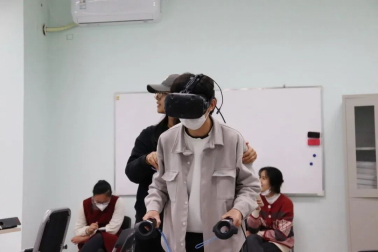 在体验VR虚拟现实活动中,同学们在各种情境中展开行为训练,在过山车和滑雪中感知紧张和恐惧,在缤纷的海底世界中感受自由和放松。通过体验式学习,深入理解VR在实现脱敏训练、心理解压、恐高心理、幽闭恐惧心理、放松训练等心理治疗中的作用原理。