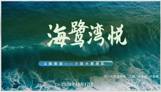 2021级土地资源管理专业本科生张舒雨,王璐,张填填,何晨曦组成“干饭不想排队”参赛,提交作品《海鹭湾悦》。在弘扬新海洋美学的基础上,良好的平衡了湿地公园的公益性和盈利性,培养学生亲海,知海,爱海等意识,彰显了当代大学生独到的创新能力。