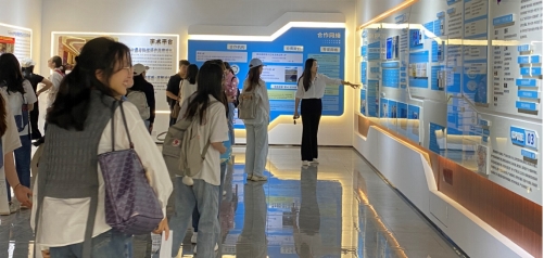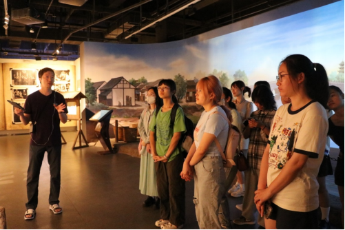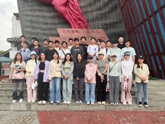 赵老师、饶老师和同学们首先乘校车于下午15时抵达战旗村游客中心,在战旗村工作人员的带领下,第一站来到“战旗初心馆”,主要对“习近平总书记视察战旗村的情景”、“战旗村党建引领农村改革路径”、“村庄发展治理工作成效”等内容进行了解。随后,一行人来到“精彩战旗馆”,对战旗村特色产品及国家地理标志产品进行参观,深入探究战旗村特色产业带动经济发展的作用路径。接着,一行人来到“乡村十八坊”,沉浸式体验战旗村非遗文化传承及非遗产品制作过程,全面体验战旗村特色产业的魅力。