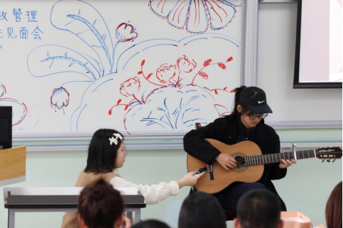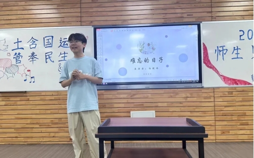 接着,活动进入第二项,才艺展示环节,由2022级土地资源管理专业班同学准备的节目向老师和同学们表演。节目主要形式分为歌曲演唱和魔术表演,首先是由张佩芝、何嘉欣和林静静同学带来的歌曲《永远都会在》,接着梁玉龙同学为同学们演唱了一首《晴天》,在此之后,杨健祎同学的魔术表演《难忘的日子》令在场全体师生印象深刻、反响热烈,最后,由杨浩、丁一恒和王昱昊同学为大家带来了一首《无名的人》,为才艺展示这一项活动画上句号。