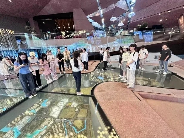 随后,赵老师与同学们前往麓湖生态城艺展中心听取土地利用项目沙盘讲解,以分析其土地利用整体布局及思路。途中工作人员耐心解答同学们的问题,引导同学们将专业知识与实际情况相结合,推动土地利用相关知识具象化、实体化,取得了较好的效果。