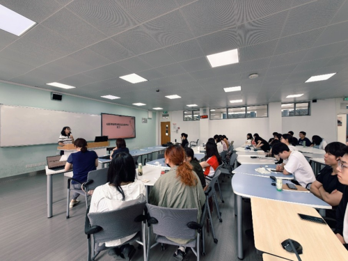 参观结束之后,锦欣百花锦园院长廖华以《我们这代人的“养老焦虑”,正在变成你们的“时代机会”》为主题对养老产业政策趋势、市场需求及人才缺口进行了分享,并针对员工绩效与薪酬管理、银发经济下职业发展等议题与同学们展开互动,现场反响热烈。