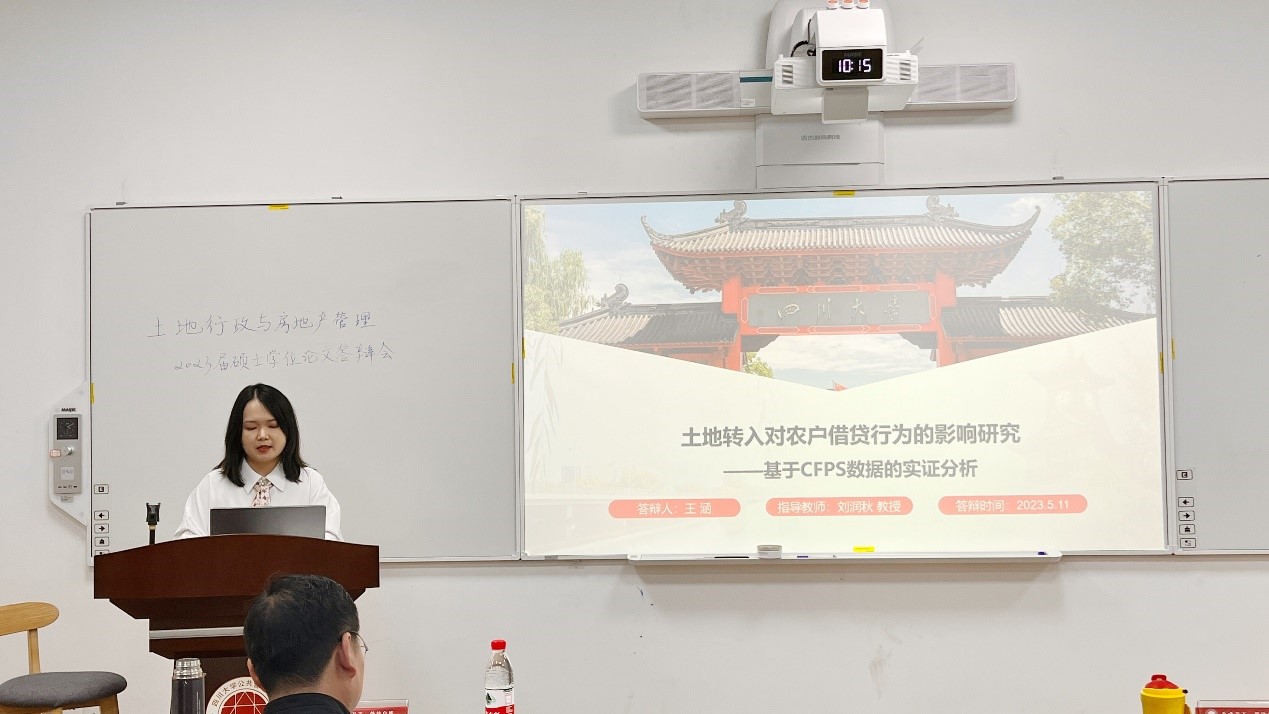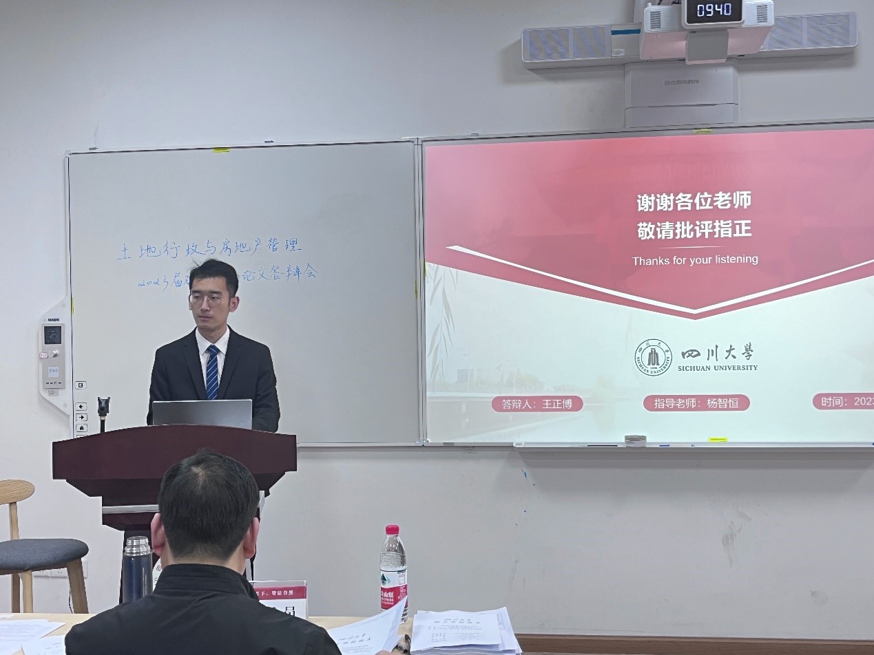 5月11日,四川大学土地行政与房地产管理专业2023届硕士研究生学位论文答辩会在betway西汉姆联官网105报告厅顺利举行。
