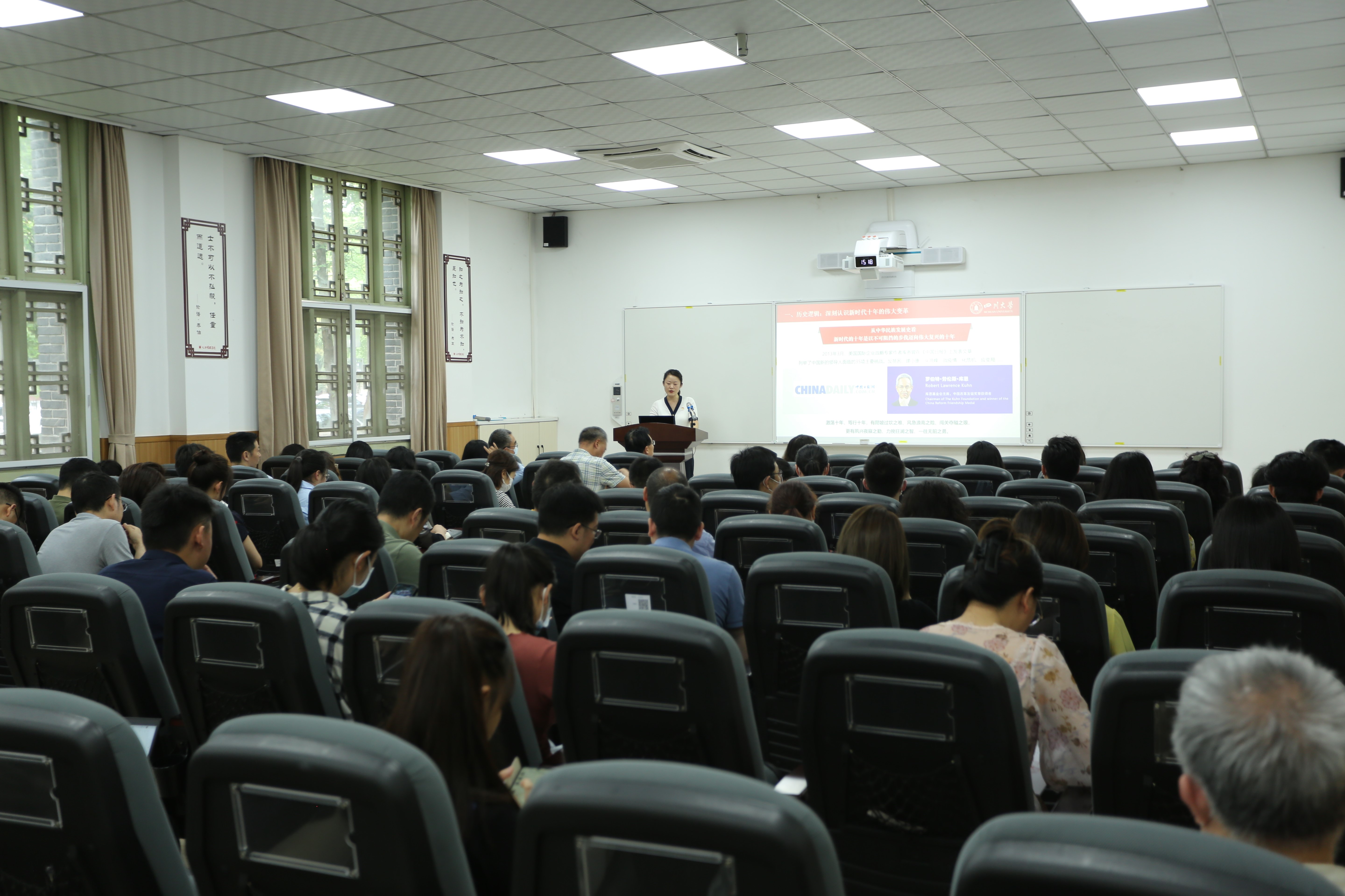 会上,全国高校学习宣传党的二十大精神巡讲团成员、四川大学马克思主义学院王丽鸽副教授以“感悟思想伟力筑牢信仰之基”为主题作报告,从“历史逻辑:深刻认识新时代十年的伟大变革”“理论逻辑:坚定信仰信念、把握历史主动”“现实逻辑:汇聚逐梦创业的建功伟业”三个维度深度解读习近平新时代中国特色社会主义思想。专题报告系统全面、内涵丰富、具有很强的理论性和思想性,对学院师生员工深入学习习近平新时代中国特色社会主义思想具有很强的指导意义。