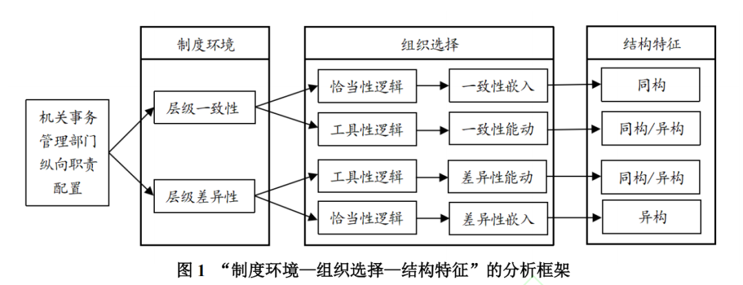 第一,丰富中国政府纵向职责体系研究。一方面,职责同构是我国纵向政府间职责配置的显著特征,但在时代发展中也呈现与之不同的新情况。本文通过对 S 省的案例分析,发现机关事务管理部门纵向配置呈现“同责混构”的特征。“同责混构”既是对机关事务管理部门纵向职责配置结构特征的理论概括,也是对我国政府纵向职责配置结构形态的理论补充。另一方面,廓清“体制决定论”和“功能选择论”的边界与限度。“体制决定论”适用上下对口设置的机构,体现了体制约束性,但难以解释异构性;“功能选择论”适用因地制宜设置的机构,体现了地方自主性,但遮蔽制度约束性。机关事务管理部门属于因地制宜设置的机构,其纵向职责配置的结构特征是制度约束与组织选择共同作用的产物。再一方面,深化对同构与异构的过程性解释。基于制度同构理论与制度复杂性研究建构“制度环境-组织选择”的分析框架,从横向部门关系与纵向层级关系两方面系统考察机关事务管理部门职责配置的制度环境,识别出强制性同构、规范性同构与效率性同构三种同构机制与强制性异构与效率性异构两种异构机制。